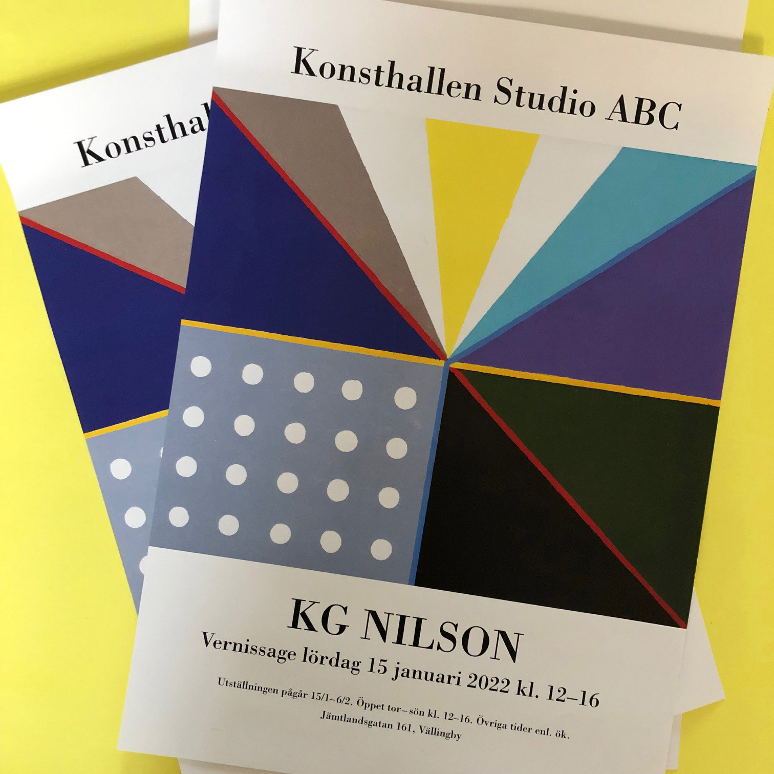 Formgivning affischer, folder, vykort till utställning med KG Nilson på Studio ABC.